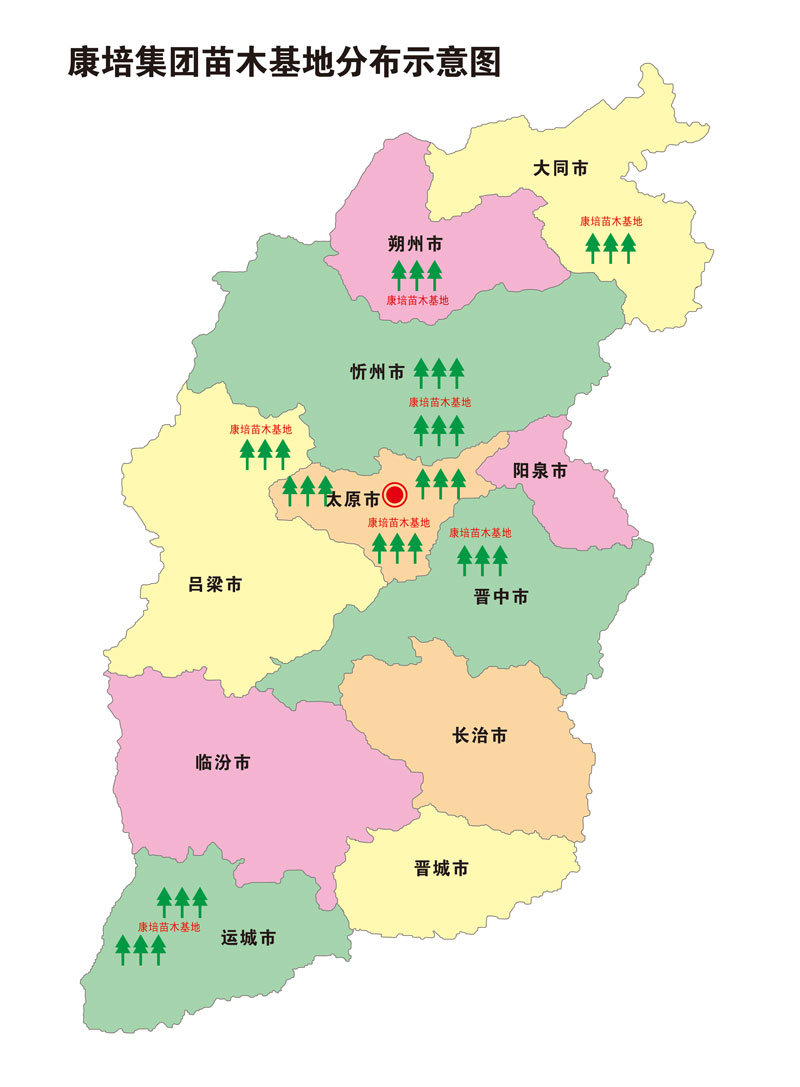 經(jīng)過20年的發(fā)展,康培集團(tuán)陸續(xù)在太原、晉中、運(yùn)城、忻州、大同、朔州、呂梁等7個(gè)地市建立了苗木種植、小苗自繁、苗木快繁、容器苗木、花卉培育等生產(chǎn)基地,培育和儲備了喬木、花灌木、地被等42科300多個(gè)品種的不同規(guī)格的苗木。